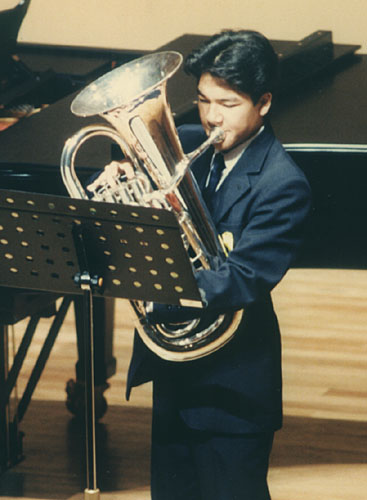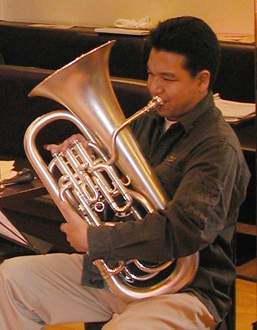 | Yamaha | YEP-321S | 中學3年生の時、卒業した先輩のお兄さんが、高専を卒業後、ユーフォを持て余してゐるとの情報があり、2萬圓くらゐで譲って貰った。前の樂器は、同額で中學校に譲った。友達から「スゲー、シルバーのユーフォだ!」と、びっくりされた樂器。合同バンドなどになると、他校の女子生徒からもキャーキャー言はれてゐた(といふ話を、中學卒業後に知らされた。もっと早く教へてくれっつ〜の)。以後15年弱、海外へ担いで行ったり、轉んでグシャグシャに凹ませてしまったり、あちこち改造したりして、この樂器を吹き續けた。ウィルソンとベッソンを購入後は、後輩に譲った。ジャズ用に取っておけばよかったかなとも、ちょっとだけ思ってる(笑)。 | |