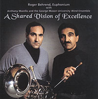 A Shared Vision of Execellence solo: Roger Behrend (Willson 2900S) cond. A.Maiell George Mason University Wind Ensemble(米 IMPS 番號不明) Symphonic Variants for Euphonium and Band (J.Curnow) Seascape (A.Reed) Rhapsody for Euphonium and Band (J.Brubaker) Introspect (R.Martino) Romanze (G.Cords / A.Fabrizio) Vintage (D.R.Gillingham) Concerto for Euphonium and Band (V.Nelhybel) ユーフォニアムのCDといふよりも、「クルーゾー警部と世界の料理ショー」といふ感じのジャケット(笑)。ベーレンドの爲に書かれた、ネリベルの「協奏曲」を収録。これまた丁寧な演奏の見本といふべきCD。しかし、何故か忘れられない演奏なのである。 |