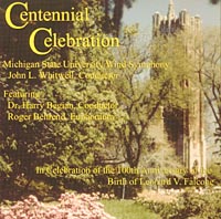 Centenial Celebration solo: Roger Behrend* (Willson 2900S) cond. J.L.Whitwell Micigan State University Wind Symphony(米 Blue Hyacinth Pro. BHP 2K02) Festive Overture (Shostakovich/arr. Hubsberger) Twilight Shadows (Steven Barton) Wilson Suite (Robert W. Smith)* L'Inglesina (Davide Delle Cese) A Quiet Place to Think (Timothy Mahr) Fantasie Original (Giovanni Picchi/arr. Simone Mantia)* Flower Song (Georges Bizet/arr. A. Austin Harding)* Finalre from Andrea Chenier (Umberto giordano/arr. James Curnow)* アメリカのバリトーン奏者として、又ミシガン州大學の有名なディレクターとして有名だった、L.ファルコーン氏生誕100周年を記念して作られたCD。氏のレパートリーや編曲作品を収録。ソロは、氏の弟子であるR.ベーレンド。今回は丁寧な演奏に加へて、とびきりに明るい音色で演奏されてをり、つい、ファルコーン氏の面影を思ひ浮べてしまふ。R.スミスの「ウィルソン組曲」は、スミスらしい雰圍氣が充満してゐて格好良いので、今後、人氣が出さうな氣がする。 |