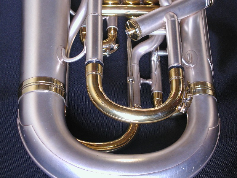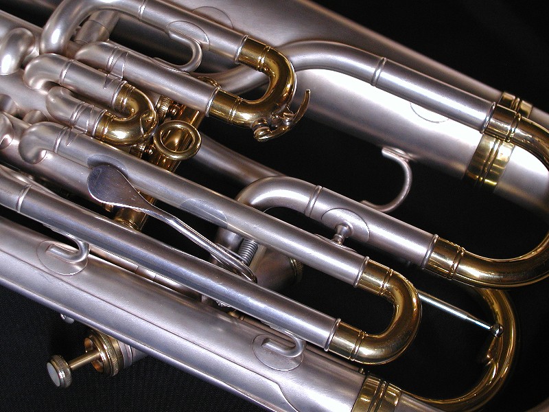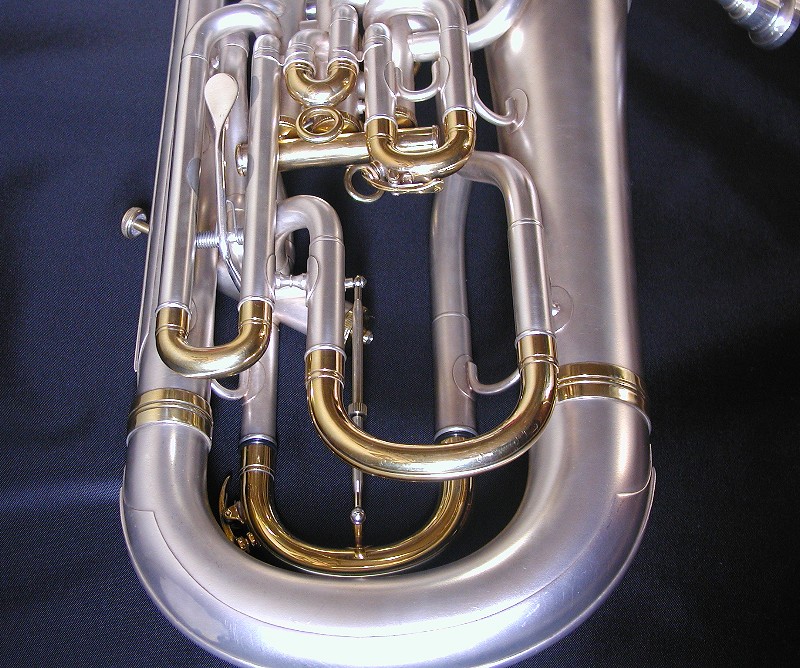 | ■ メインテューニングスライドにトリガー装着(管楽器DACにて) さらなる音程改善を圖り、海外からパーツを取寄せ、DACさんで装着して貰ひました。DACさんオリジナルのトリガーではないのに、丁寧に取付けて頂き、感謝です! ワタシが着けたパーツについては、お取次できますので、興味のある方はメールでご連絡下さい(パーツの値段は3萬圓くらゐです)。ウィルソンにも取付可能だとのことです。 |