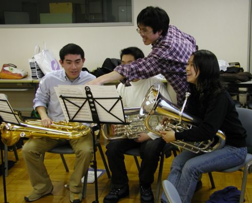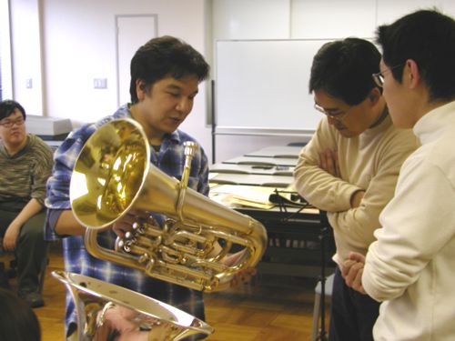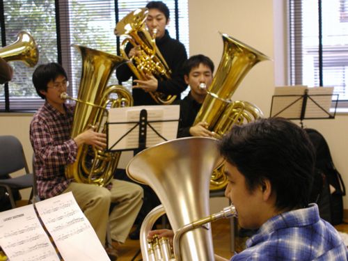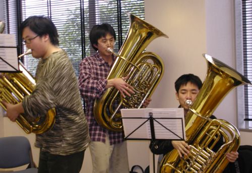 | こっちは「男子大喇叭三楽坊」か、はたまた「テューバ三勇士」か・・・ |
