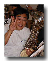 ここで休憩(&換気)。皆さま、まだまだ余裕、という顔でした。このとき、マウスピースの内側までサテンシルバーにしている方を発見。よくよく周囲を見回せば、さりげなく余分な部品や改造を施してある楽器がちらほら・・・。青いチューバも初めて見ました。