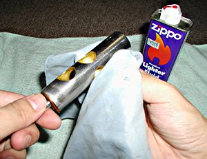 必ずやらなくてはならないといふ譯ではないが、ピストンにオイルが殘ってゐたり、水垢ついてゐたりしたら、ライターのオイルを染み込ませたガーゼなどで拭き落とす。この時、柔らかくて、毛羽立たない布を使ふこと。 |