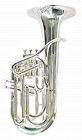 開演前、早速ステージに寄ってみると、バスの擔當者のイスの脇には、樂器が6台ある。バスと、ユーフォニアムであった。バスは、コルトワ製であると思はれたが、一回轉してゐるはずのマウスパイプが、斜めにのびてゐるといふ新しいタイプであった! 上部の畫像(コルトワのページから拜借)、Courtois Saxhorn Basse 266、および今ご覧のこのページの背景が、その樂器である。畫像左側のCourtois Saxhorn Basse 166 と比べて頂きたい。通常のサクソルンバスでは、膝に樂器本體を置いての演奏が困難であったが、新しいタイプならそれが樂々可能である。またメインテューニングスライド(マウスパイプに直結してゐる)には、トリガーらしき物が見える。最早廃れた樂器と思ってゐたが、かういふ新機種が登場してゐるとは、恐れ入った。一方ユーフォニアムは、コルトワ、ベッソンのプレスティージュ、もう1台が不明。いづれも、4本ピストン・コンペンセイティング式である。
