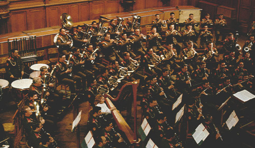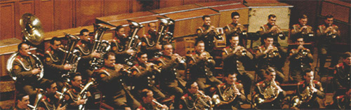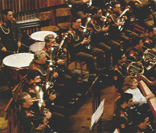 1978年に収録された、アナトリイ・マルツェフ指揮、ソヴィエト國防省吹奏樂團によるLP「華麗なるロシアンブラス II」(Victor - Merodia VIC-28023)のジャケットを見ると、金管樂器は、トランペット、ホルン、トロンボーン、テューバの他、コルネット(Bb。Ebがあるどうかは不明)、Eb アルトホルン、Bb テノールホルン、Bb バリトン、F バス(若しくはEb?)、スーザフォンが、ぎっしりである。使はれてゐる樂器は、トランペット、コルネット、トロンボーン、スーザフォンの他は全てロータリ式であり、アルト、テノール、バリトンはドイツや東欧獨特の卵形の樂器である。