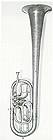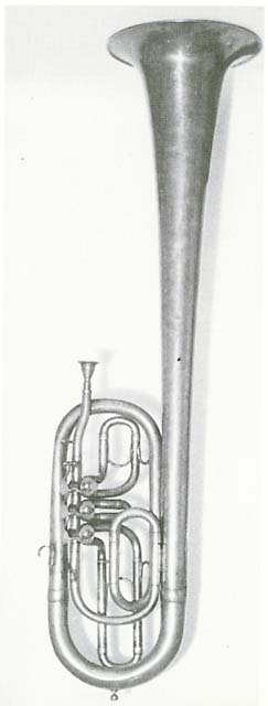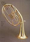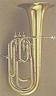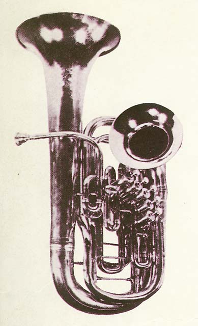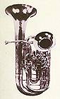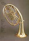| 1861年當時のサクソルンバス。肩に擔いで演奏する。 | キング社のバリトンホーン(ユーフォニアム)。モデル2266 | コーン社のダブルベルモデル。第5バルブでベルを切替へる。 |